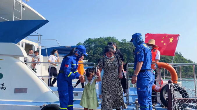 笙歌颂国庆,红旗迎风扬,庐山西海人,坚守岗位,服务游客,用行动向祖国致敬。