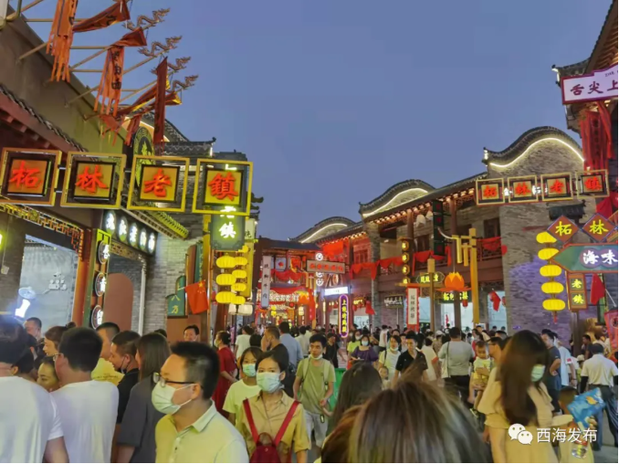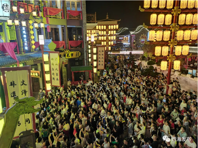 国庆舞蹈快闪、龙王招婿、仙子飞天……游客不仅能沉浸在大型水幕光影秀《西海追梦》中,还可以一边品尝各地特色美食,一边参与节目互动,拍下唯美的灯光夜景,感受“看修河泛舟,听古琴悠悠,享柘林美味”的惬意。