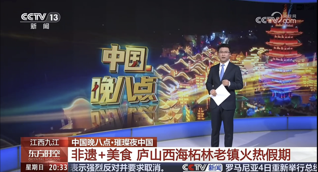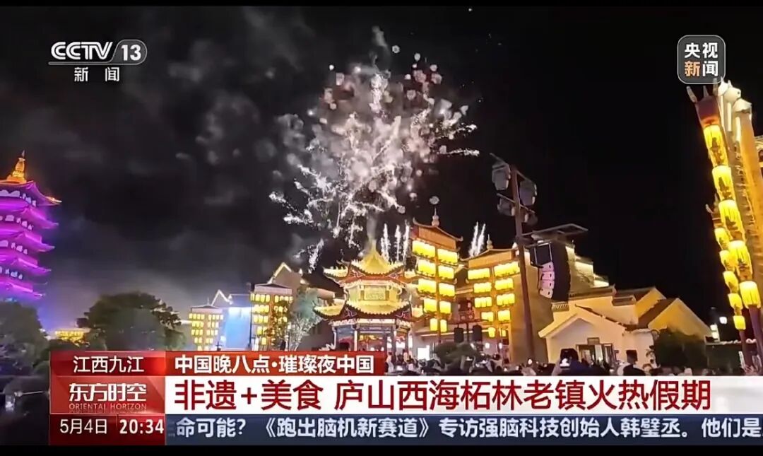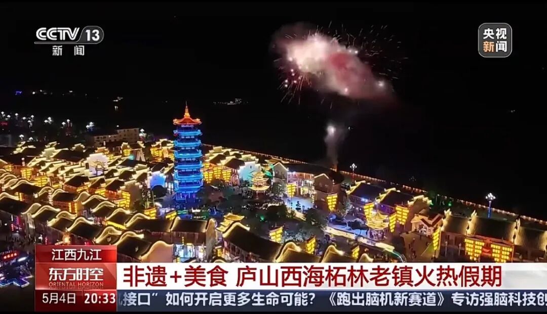 5月4日,央视“东方时空”栏目播出《中国晚八点·璀璨夜中国 江西九江 非遗+美食 庐山西海柘林老镇火热假期》,报道“五一”假期庐山西海游客络绎不绝、热力爆表。